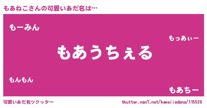| 女子向けラノベタイトル風あだ名 | 『もあねこなんてお断りですっ。』 |