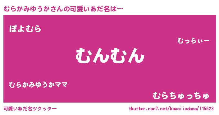 | 恥ずかしいあだ名 | 『プリティーむらかみゆうか』『むらちん』 |