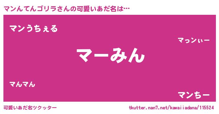 | 男性向けラノベタイトル風あだ名 | 『うちのマンんてんゴリラが世界を掌握している!』 |