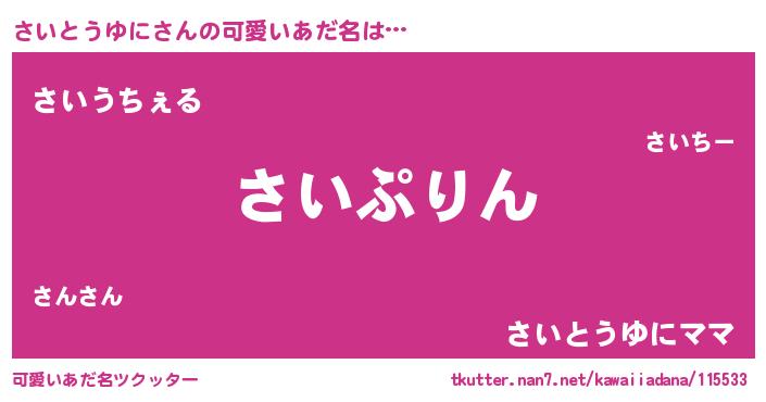 | ヘコむあだ名 | 『さいとうゆに(笑)』『なまこ酢』 |