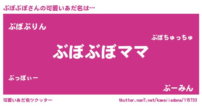 | ヘコむあだ名 | 『ぶぼぶぼ(遠い目)』『ぶぼっぺ』 |