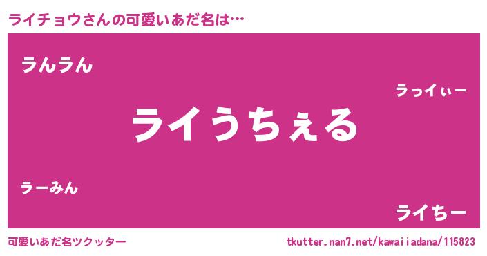 | ヘコむあだ名 | 『ライにー』『豆乳』『ライっ子』 |
