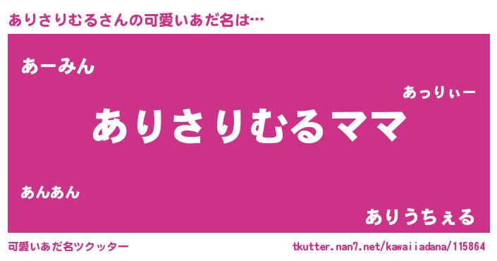 | ヘコむあだ名 | 『ありさりむる(爆)』『ありっぺ』 |