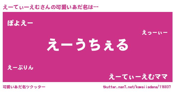 | 意味不明あだ名 | 『自称えーてぃーえむ』 |