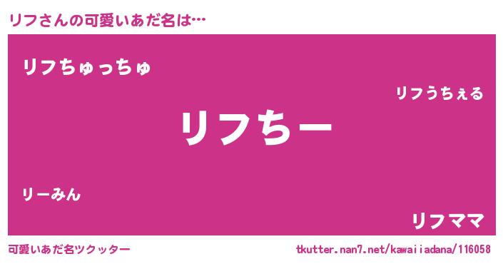 | ヘコむあだ名 | 『酢こんぶ』『リフ(笑)』『リフっ子』 |