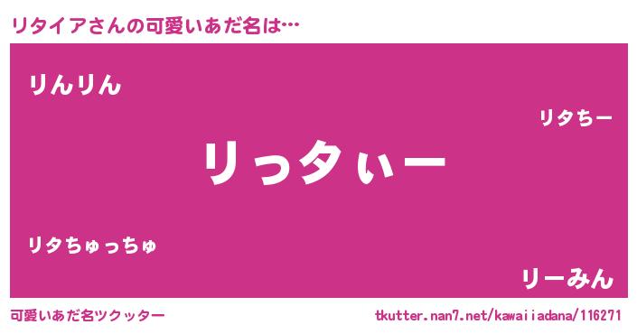 | ヘコむあだ名 | 『リタを』『リタにー』『つくし』 |