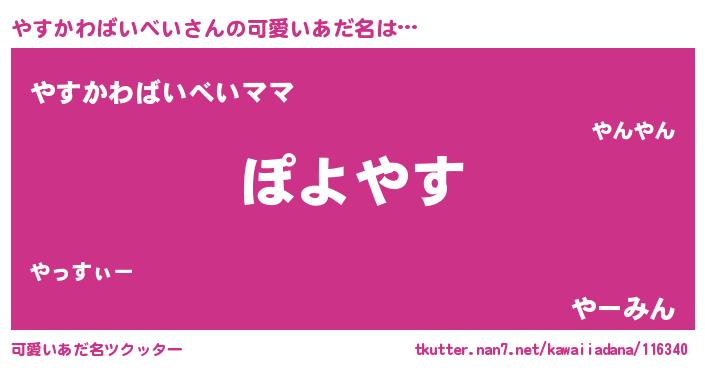 | 男性向けラノベタイトル風あだ名 | 『この素晴らしい世界にやすかわばいべいを!』 |