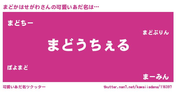 | 男性向けラノベタイトル風あだ名 | 『Re:まどかはせがわから始める異世界生活』 |