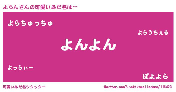 | 意味不明あだ名 | 『ペロリンよらん』『自称よらん』 |