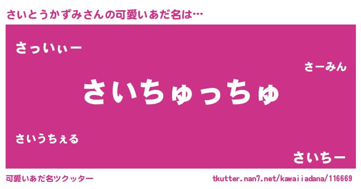 | ポケモン風あだ名 | 『サックウザ』『ヒサイトウカズミ』 |