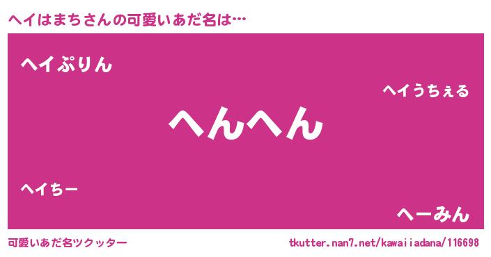 | 意味不明あだ名 | 『ペロリンヘイはまち』『自称ヘイはまち』 |