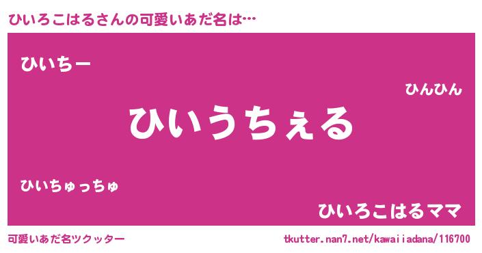 | 意味不明あだ名 | 『自称ひいろこはる』 |
