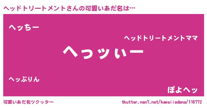 | ポケモン風あだ名 | 『ヒヘッドトリートメント』『ヘッドダネ』 |