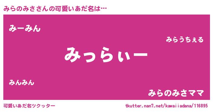 | 女子向けラノベタイトル風あだ名 | 『みらのみさは平凡を望む』 |