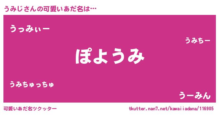 | ヘコむあだ名 | 『うみお』『豆乳』『うみじ(爆)』 |