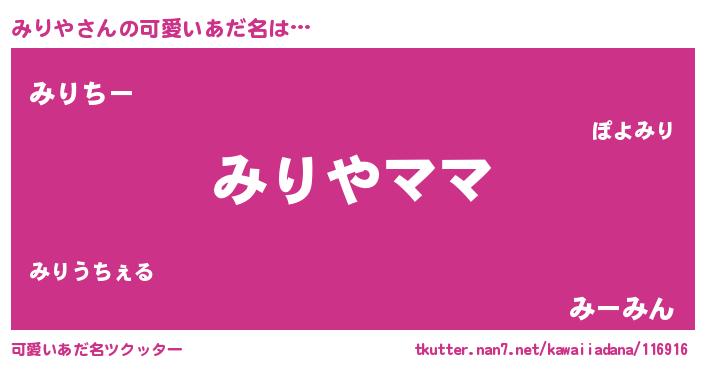 | ヘコむあだ名 | 『みりや(笑)』『なまこ酢』『みりを』 |