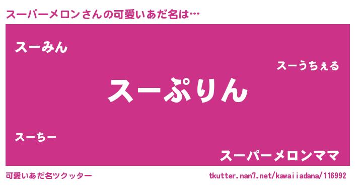 | ヒーロー風カッコイイあだ名 | 『ネオスーパーメロン』『仮面スーダー』 |