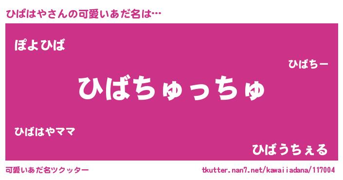 | ヘコむあだ名 | 『豆乳』『ひばはや(笑)』『ひばお』 |