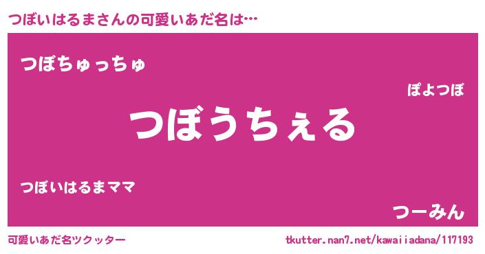 | ヘコむあだ名 | 『つぼいはるま(小並感)』『つくし』 |