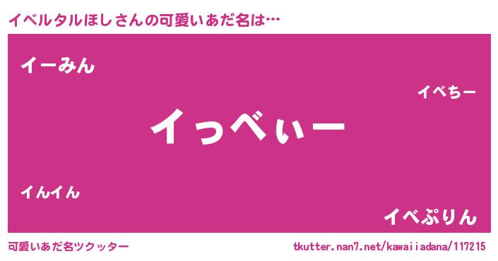 | ポケモン風あだ名 | 『ヒイベルタルホシ』『イベゴンZ』 |