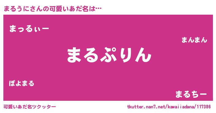 | 男性向けラノベタイトル風あだ名 | 『マルウニスレイヤー』『まるうにの憂鬱』 |