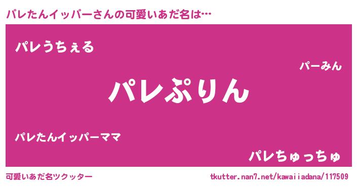 | 男性向けラノベタイトル風あだ名 | 『パレたんイッパー~年齢イコール彼女いない歴の魔法使い~』 |