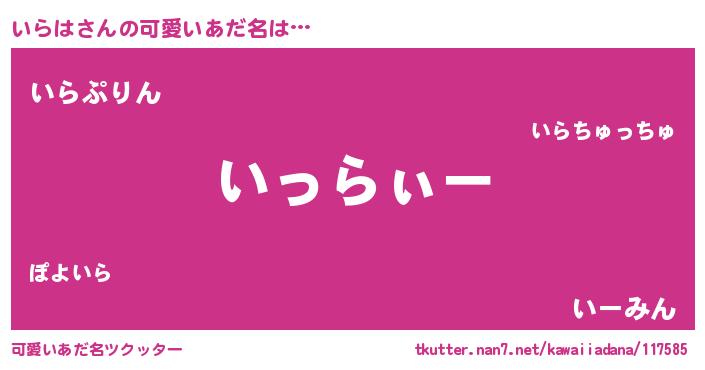 | ヘコむあだ名 | 『いらぷりん』『いらは(遠い目)』 |