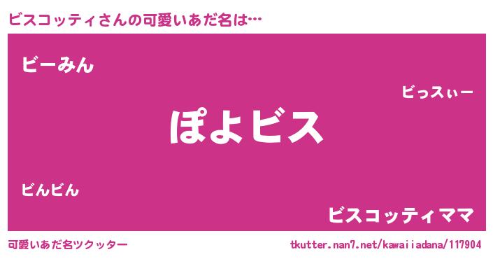 | 女子向けラノベタイトル風あだ名 | 『乙女ゲームの破滅フラグしかない悪役ビスコッティに転生してしまった…』 |