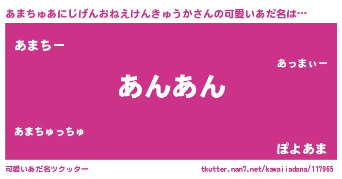 | 恥ずかしいあだ名 | 『プリティーあまちゅあにじげんおねえけんきゅうか』 |