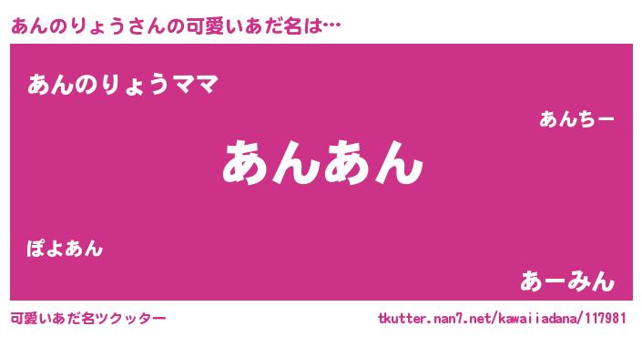 | 恥ずかしいあだ名 | 『プリティーあんのりょう』『あんちん』 |