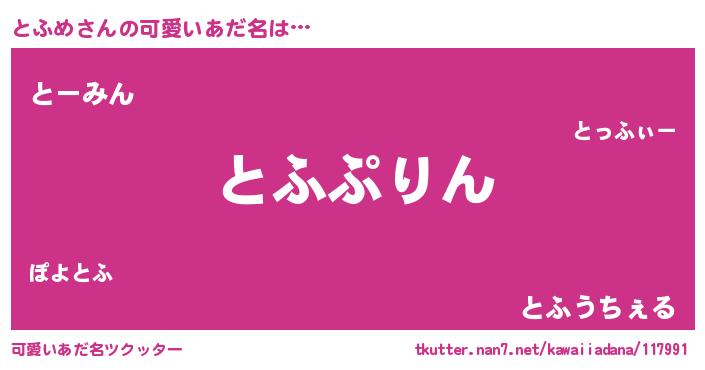 | 料理風あだ名 | 『とふめごはん』 |