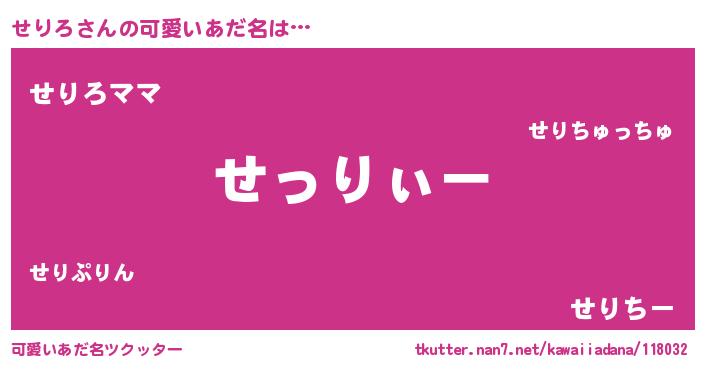| ポケモン風あだ名 | 『ヒセリロ』『ゼニセリ』『セリゴンZ』 |