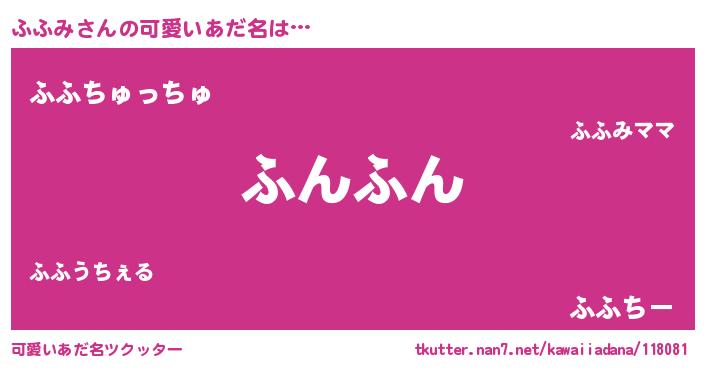 | ポケモン風あだ名 | 『フフチュウ』『フックウザ』 |
