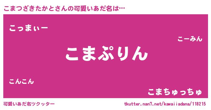 | ポケモン風あだ名 | 『コマキング』『ヒコマツザキタカト』 |