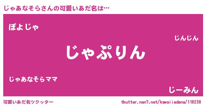 恥ずかしいあだ名 | 『プリティーじゃあなそら』『じゃちん』 |