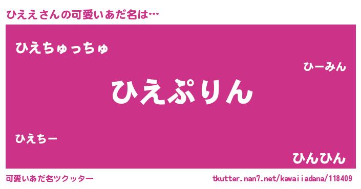 | 料理風あだ名 | 『ひええごはん』『ひええのトマト煮』 |
