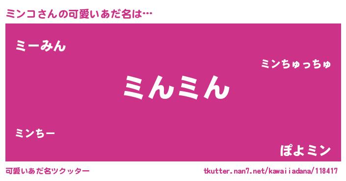 | 意味不明あだ名 | 『ペロリンミンコ』『ミンコフォーエバー』 |