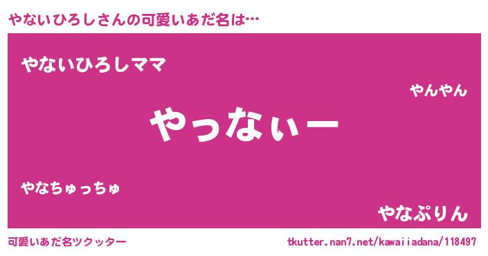 | 男性向けラノベタイトル風あだ名 | 『やないひろしの嫁は女の子じゃないと思った?』 |