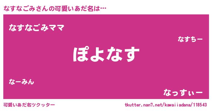 | ヘコむあだ名 | 『なすなごみ(苦笑)』『なすっ子』 |