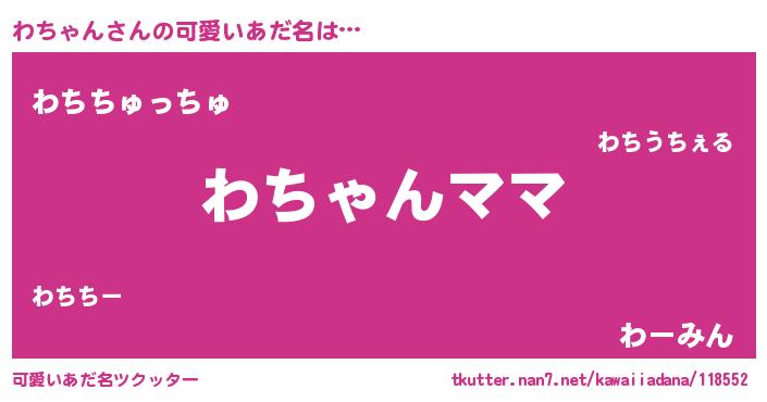 | ヒーロー風カッコイイあだ名 | 『ネオワチャン』『慈愛の使者わちゃん』 |