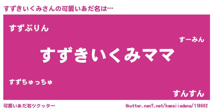 ヘコむあだ名 | 『すずきいくみ(爆)』『すずにー』 |