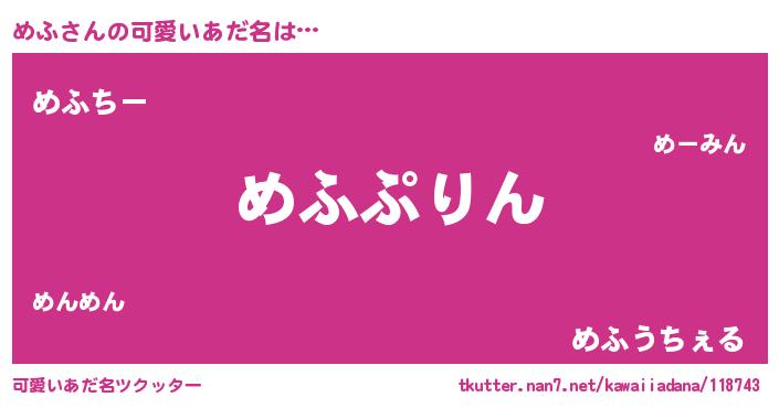 | 男性向けラノベタイトル風あだ名 | 『転生したらめふだった件』『緋弾のメフ』 |