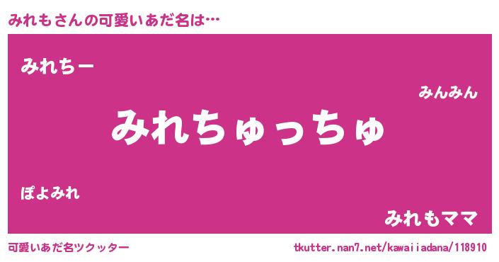 | ヒーロー風カッコイイあだ名 | 『愛の使者みれも』『ウルトラみれもマン』 |