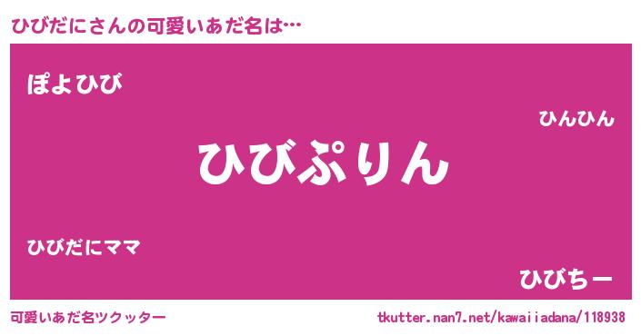 | ヒーロー風カッコイイあだ名 | 『仮面ヒビダー』『ウルトラひびだにマン』 |