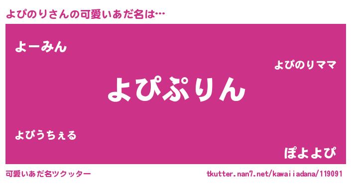 | 意味不明あだ名 | 『めかぶ科よぴのり属』『自称よぴのり』 |