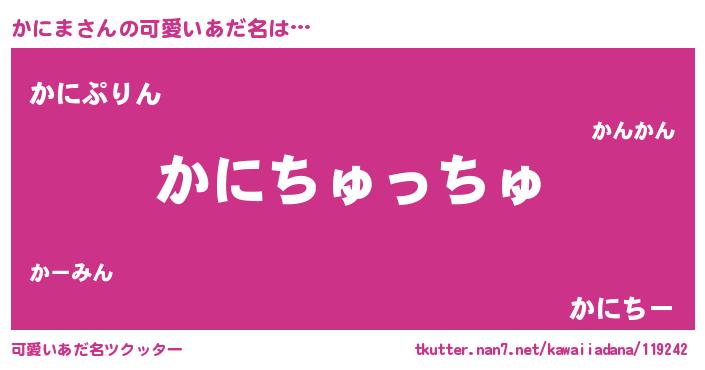 | ヒーロー風カッコイイあだ名 | 『天空の使者かにま』『スーパーカニマ』 |