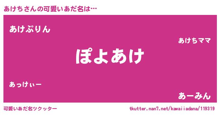 | 恥ずかしいあだ名 | 『あけちん』『アケリンリン』 |
