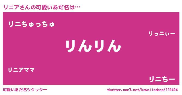 | ヘコむあだ名 | 『リニふぇ~』『豆乳』『リニお』 |