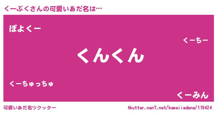 | 恥ずかしいあだ名 | 『プリティーくーぷく』『くーっちょ』 |