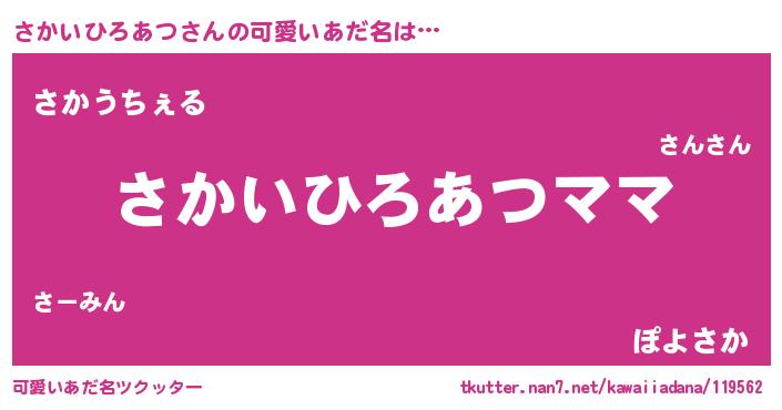 | ヘコむあだ名 | 『さかいひろあつ(笑)』『さかふぇ~』 |